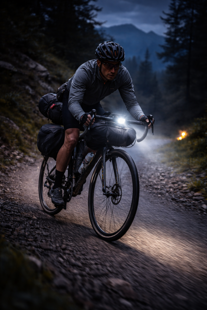 Beim Bikepacking oder auf Radreisen sorgt eine starke Fahrradbeleuchtung dafür, dass du den Weg erkennst und im Straßenverkehr gesehen wirst. Moderne Modelle sind leicht, hell und per USB aufladbar.